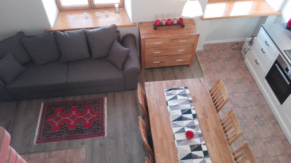 - Alakerrassa ruokailutila/avokeittiö, takka ja wc/suihku.